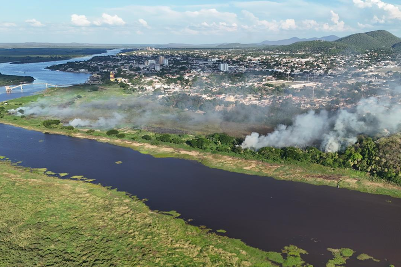 Um incêndio de grandes proporções atinge, nesta quarta-feira (22), a vegetação localizada na margem do Rio Paraguai, em Corumbá. As chamas avançaram rapidamente em direção a áreas residenciais próximas à captação de água do município, o que levou à mobilização imediata de uma força-tarefa coordenada pelo Comitê Municipal do Fogo.