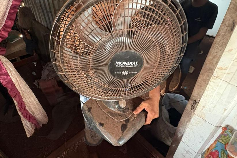 Poeira de minério se acumula sobre ventilador dentro de residência na comunidade. Foto: Divulgação / MoradoresA situação tem provocado aumento de casos de asma, bronquite, rinite alérgica, irritações oculares, sangramentos nasais, dermatites, estresse e distúrbios do sono, com maior impacto sobre crianças e idosos. O tráfego intenso também gera poluição sonora constante, comprometendo o direito ao sossego da comunidade.