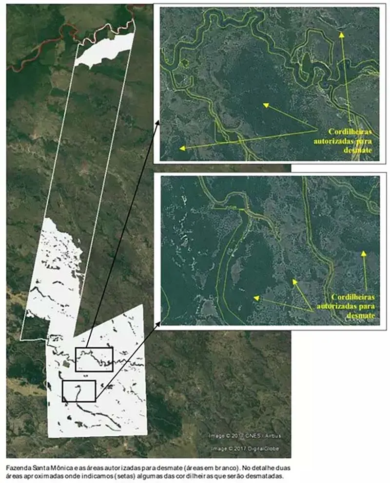 A autorização questionada havia sido concedida em abril de 2017 para a supressão de 20.526 hectares de vegetação na Fazenda Santa Mônica, no Pantanal do Paiaguás, área considerada de preservação permanente e refúgio de aves migratórias. A propriedade totaliza 38.398 hectares. Segundo os proprietários, a solicitação incluía supressão de vegetação em 5.617 hectares, substituição de pastagens nativas em 14.908 hectares e queima controlada de restos florestais.