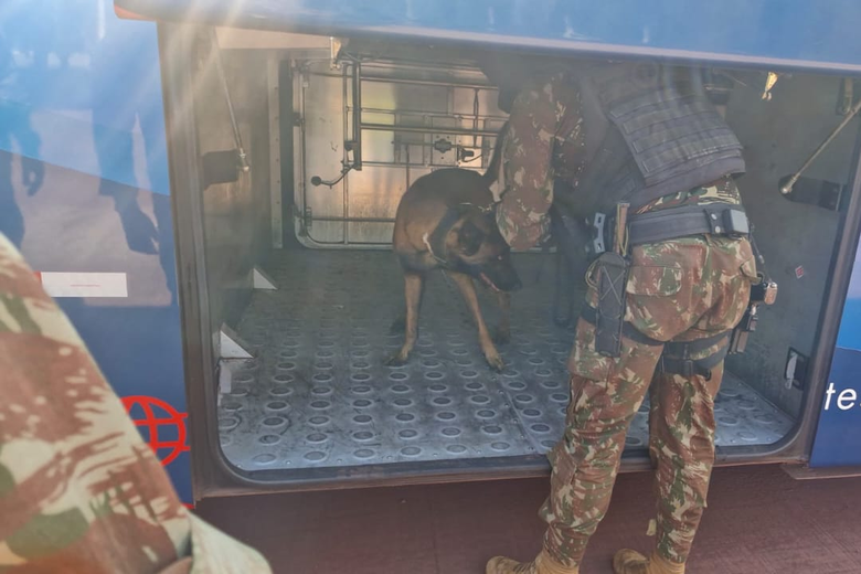 Cão farejador encontrou cápsulas de cocaína em ônibus que seguia de Corumbá para Campo Grande. (Foto: 18ª Brigada de Infantaria de Pantanal)