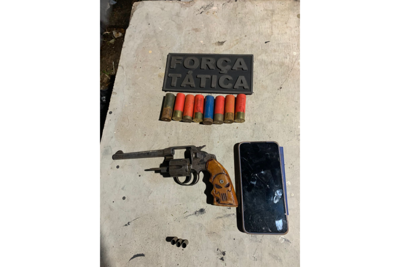 Dois suspeitos foram contidos e desarmados. Com eles, foram encontradas armas de fogo e diversas munições. Durante a ocorrência, populares tentaram interferir na prisão, incluindo a mãe de um dos menores apreendidos, que reagiu de forma agressiva. Foi necessário o uso de munição de impacto não letal para contê-la. A mulher recebeu atendimento médico no local e não sofreu ferimentos graves.