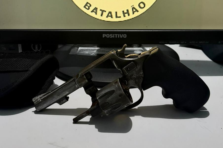 Durante as buscas, um revólver calibre 32 foi encontrado escondido em meio à vegetação. Questionado, o autor assumiu a propriedade da arma de fogo. A arma foi apreendida e o homem foi encaminhado à Delegacia de Polícia Civil.