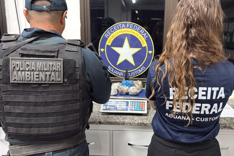 A apreensão totalizou cerca de 4,4 kg de pasta base de cocaína. (Foto: Divulgação/RFB)