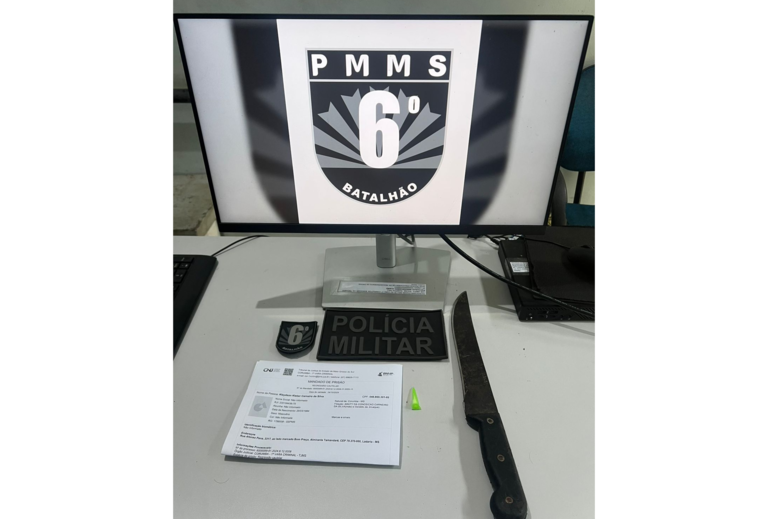Durante a abordagem, os militares encontraram com o suspeito um facão e um pino com substância análoga à pasta base de cocaína. Além do cumprimento do mandado judicial, foi registrado procedimento por porte de droga para consumo pessoal e porte de arma branca. O homem foi encaminhado à 1ª Delegacia de Polícia Civil, onde ficou à disposição da Justiça.