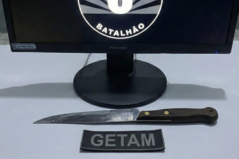 Durante a revista, os militares encontraram uma faca de 15 centímetros escondida sob o short. Além da arma branca, a equipe constatou que a tornozeleira eletrônica do indivíduo estava desligada — segundo ele, por falta de carga há dois dias.