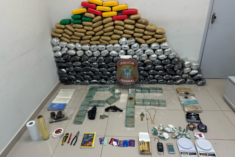 Entre os entorpecentes estão: 9,5 kg de maconha, 4,2 kg de cocaína e 22,7 kg de pasta base. No mesmo quarto da pousada, os policiais também apreenderam materiais para o fracionamento da droga, balanças de precisão, caderno com anotações e cartões bancários.