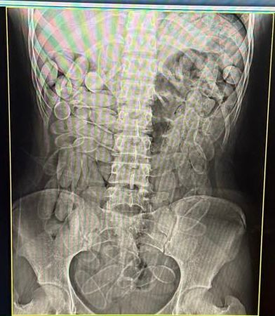 Imagem de raio-X revela cápsulas de droga ingeridas pelas jovens. Foto: Divulgação/Receita Federal As jovens foram encaminhadas à Santa Casa, onde exames de raio-X indicaram que ambas haviam ingerido 102 cápsulas cada uma. A droga apreendida totalizou aproximadamente dois quilos e duzentos gramas.