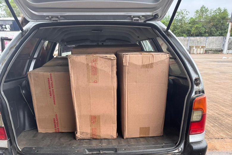 Veículos transportavam os calçados falsificados para serem vendidos no comércio de Corumbá. (Foto: RFB)