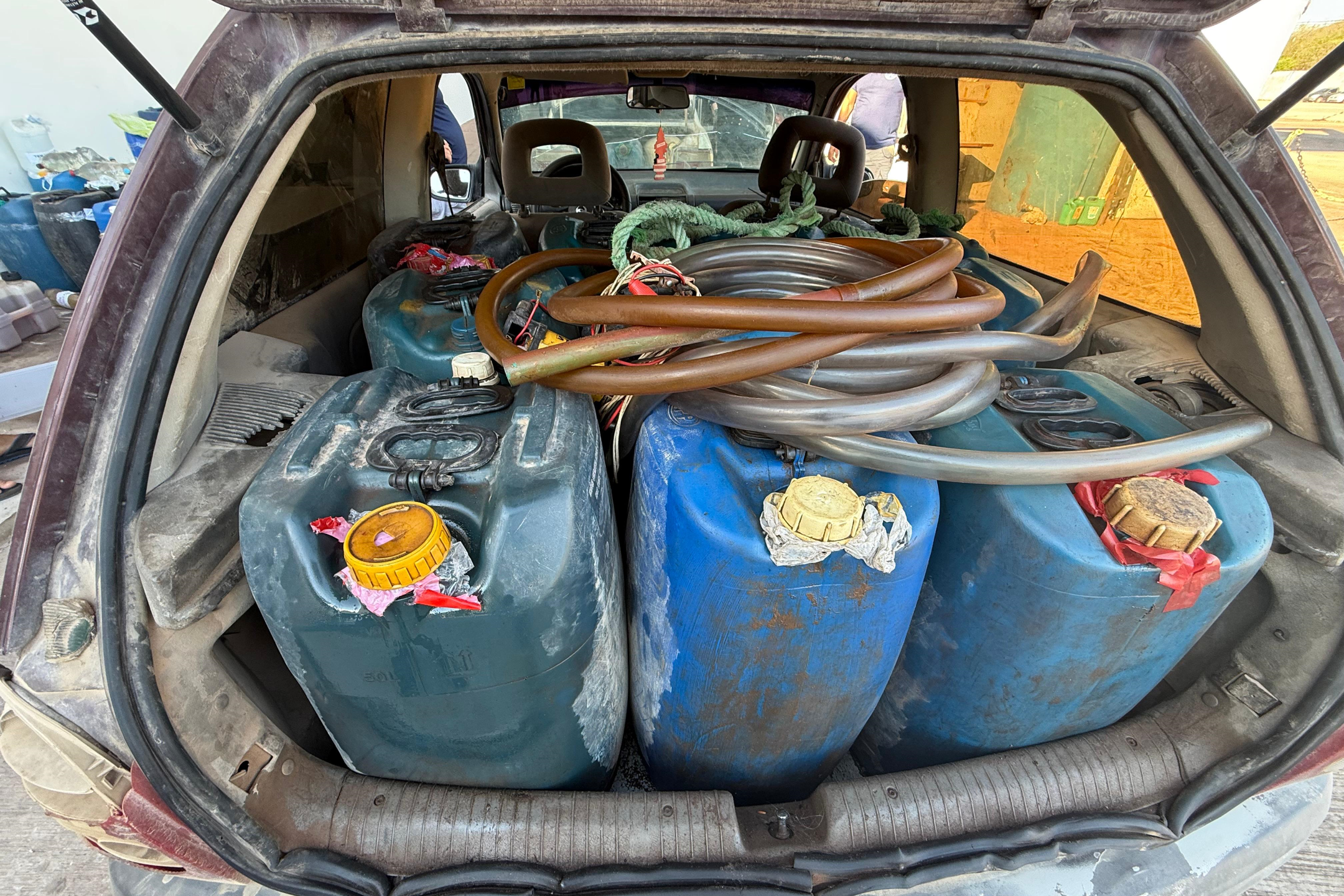 Dois bolivianos foram flagrados com 1.200 litros de diesel, volume que ultrapassa o permitido. Foto: Divulgação/RFBEm Corumbá, quatro apreensões de destaque marcaram as ações da Operação Fronteira RFB no município.