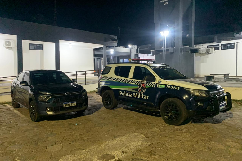 O veículo, avaliado em mais de R$ 100 mil, estava com placas adulteradas. O homem e a mulher foram presos e conduzidos para Delegacia de Polícia Civil.