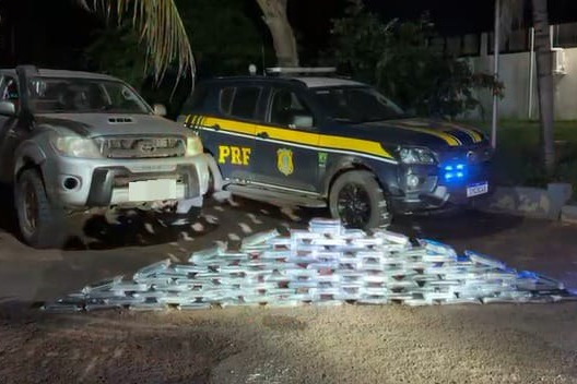A Polícia Rodoviária Federal (PRF) apreendeu 101 quilos de cocaína nesta quarta-feira (12) durante fiscalização na BR-419, em Rio Negro. A droga estava escondida em uma caminhonete Toyota Hilux.