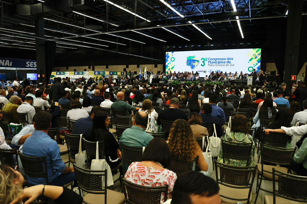 Com foco em fortalecer o municipalismo e promover a eficiência na gestão pública, o 3º Congresso dos Municípios de Mato Grosso do Sul foi aberto oficialmente na tarde de segunda-feira (20), no Bosque Expo, em Campo Grande. Organizado pela Associação dos Municípios de Mato Grosso do Sul (Assomasul), com correalização do Sebrae/MS e apoio do Governo do Estado, o congresso encerra sua programação nesta quarta-feira (22). O encontro reuniu mais de dois mil participantes no primeiro dia, com 69 municípios do Estado representados por líderes do executivo.