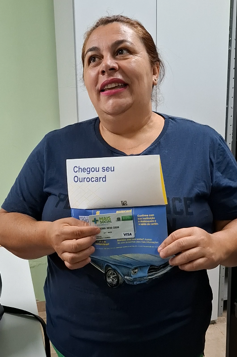 Já Larissa Camargo tem uma filha de 1 ano e 2 meses. O cartão chegou quando ela mais precisava. "Vai ser muito importante porque meu marido trabalha na diária, não tem salário fixo. Vai me ajudar. Eles foram ali fazer visita na minha casa. Demorou assim, 1 ou 2 meses. A mulher do Mais Social falou que tinha que ver quem tinha direito de receber o benefício. Aí chegou a mensagem para vir pegar meu cartão, bem na hora que eu mais precisava. Vou poder comprar fralda, leite e fruta, para a minha nenê, porque ela já come", conta.