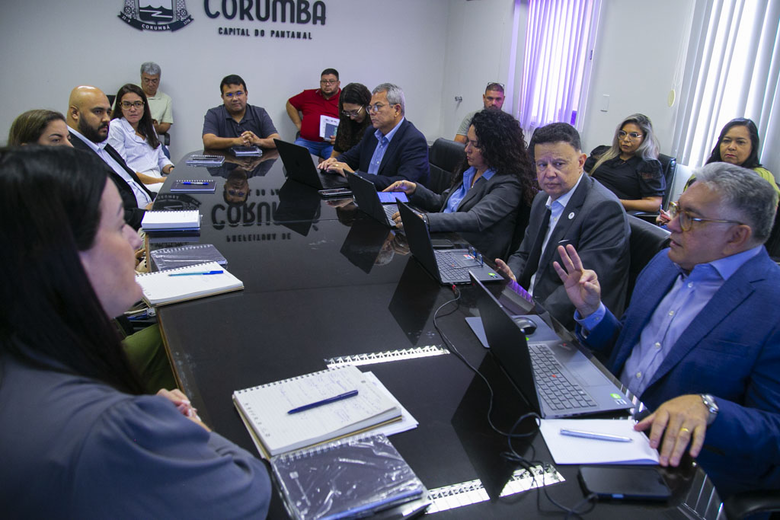 Reunião no gabinete do prefeito de Corumbá. (Foto: Clóvis Neto/PMC)