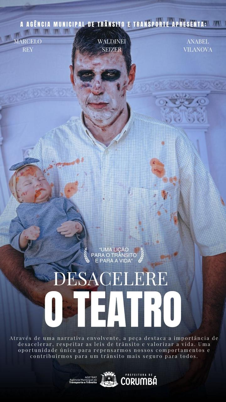 Espetáculo teatral "Desacelere" recebeu destaque especial. Foto: DivulgaçãoEntre as atividades realizadas ao longo do ano, merece destaque especial o espetáculo teatral “Desacelere”, iniciativa da Agetrat que ganhou repercussão estadual, sendo apresentado inclusive em outros municípios, como Aquidauana e Ladário. A ação levanta reflexões sobre segurança viária, comportamento no trânsito e responsabilidade social, alcançando diferentes públicos e idades.