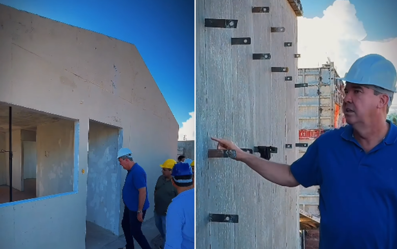 Governador Eduardo Riedel acompanhando a construção de 184 casas sociais em Corumbá. (Foto: Reprodução/Redes Sociais )