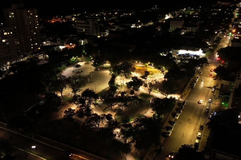 O Jardim da Independência, no centro de Corumbá, está novamente iluminado. Essa é a sétima vez, desde julho do ano passado, que a Prefeitura de Corumbá refaz a iluminação pública no local devido crimes de furto de cabos. O último, registrado na semana passada, subtraiu ao menos 190 metros de cabos de energia da praça. Mesmo com os esforços e reparos sendo realizados, parte da praça ainda está às escuras.