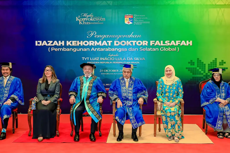 O presidente Luiz Inácio Lula da Silva voltou a criticar a continuidade da guerra em Gaza e a resistência mundial em criar um Estado palestino. A declaração foi dada neste sábado (25), durante a cerimônia de recebimento do título de doutor Honoris Causa em Filosofia e Desenvolvimento Internacional do Sul Global, concedido pela Universidade Nacional da Malásia, em Putrajaya, capital administrativa da Malásia.
