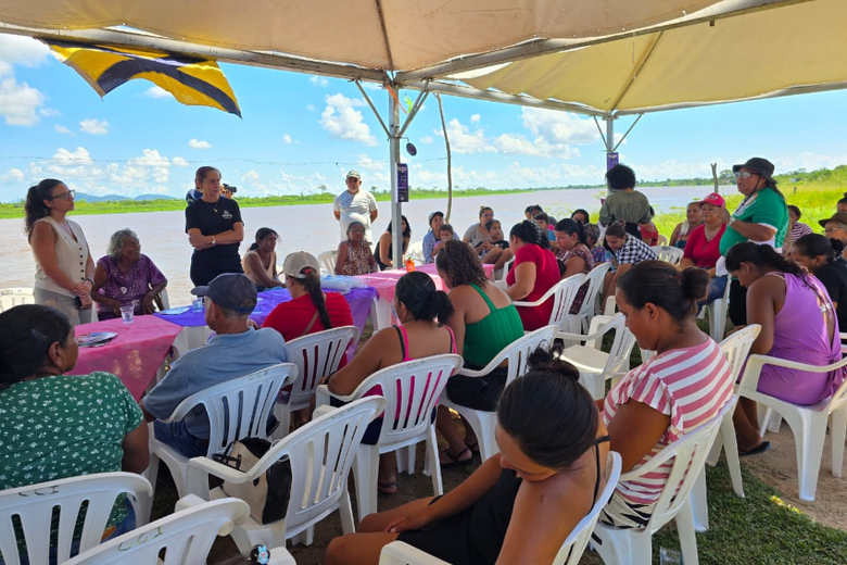 Um dos pilares da ação foi a palestra ministrada pelo Sargento Gerson, do Programa Mulher Segura (PROMUSE) da Polícia Militar. O foco foi o enfrentamento à violência doméstica em contextos ribeirinhos, onde o isolamento muitas vezes silencia as vítimas.