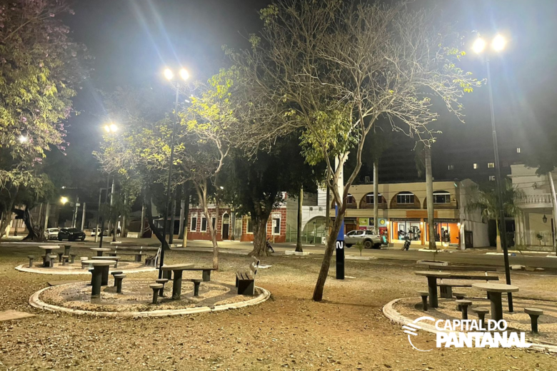 Com nova iluminação, famílias podem voltar a habitar a Praça Generoso Ponce a qualquer hora do dia ou da noite. (Foto: Capital do Pantanal)