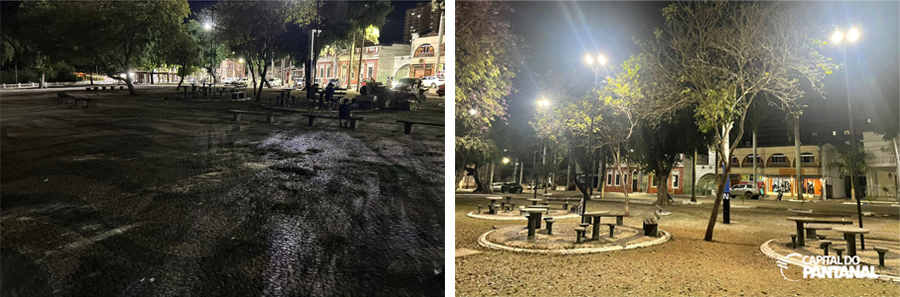 Imagem do antes e depois dos serviços executados na praça Generoso Ponce mostra uma diferença abismal. Foto: Capital do PantanalA PPP de iluminação pública em Corumbá é pioneira no estado e, nasce com a missão de dar luz para toda área que esteja na escuridão no município. O consórcio tem orçamento de R$ 90 milhões e prevê a aplicação de R$ 12 milhões já nos dois primeiros anos, com a substituição de cerca de 16 mil pontos de luz por luminárias de LED, instalação de um sistema de telegestão e a criação de um centro de controle operacional. O contrato foi elaborado com apoio técnico da Caixa Econômica Federal e do Programa de Parcerias de Investimentos (PPI), do governo federal. A base legal do projeto é a Lei Municipal nº 2.866, de 2022.