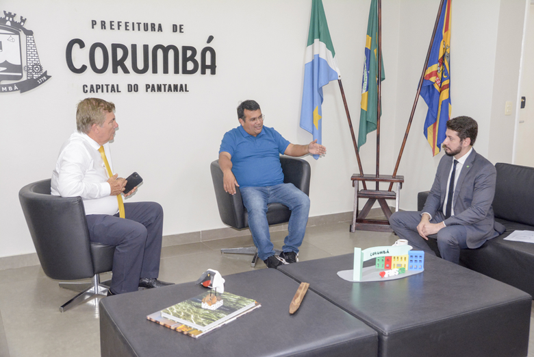 Em reunião realizada na tarde desta quarta-feira (15), o prefeito Dr. Gabriel Alves de Oliveira recebeu o chefe da Defensoria Pública da União (DPU) em Mato Grosso do Sul, Vinícius Santana Rissato, para discutir ações voltadas à melhoria do atendimento prestado pela instituição em Corumbá. O encontro também contou com a presença do procurador-geral do Município, Roberto Ajala Lins.