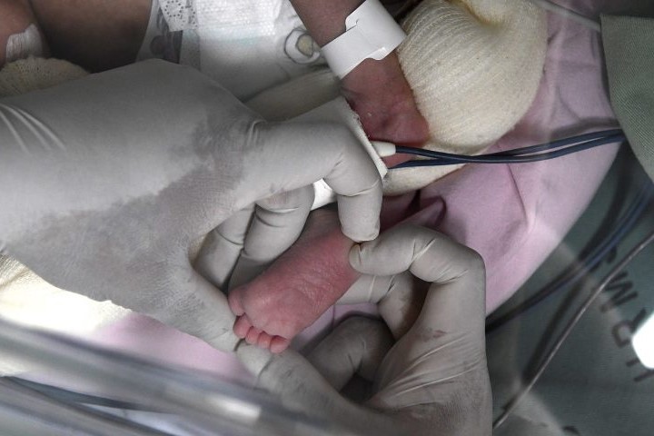 Bebê recém-nascido durante exame laboratorial de sangue. (Foto: Bruno Rezende/Arquivo Secom)